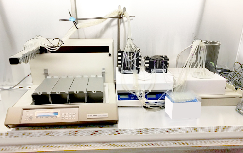 Non richiede un computer o software esterno, quindi è facile da usare. Il suo ingombro ridotto consente di inserirlo facilmente in una cappa a flusso laminare rendendolo ideale per i piccoli laboratori. Tutti i tubi che compongono il percorso del liquido possono essere sterilizzati, riducendo il rischio di contaminazione.